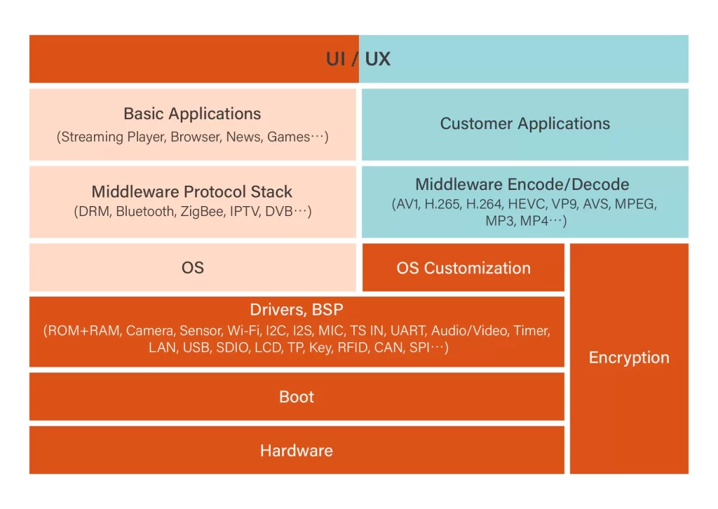 Our engineers bring over 12 years of experience in hardware customization for Android TV box development. We handle everything from hardware and drivers to OS customization, middleware (DRM, encoding/decoding), and user-friendly UI/UX design.